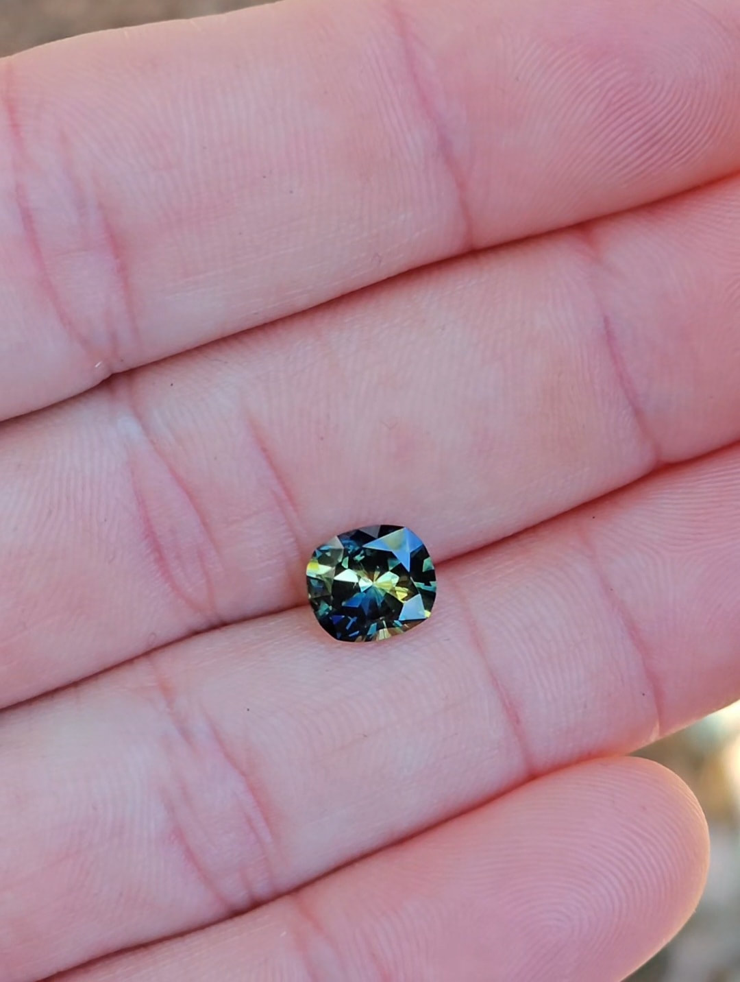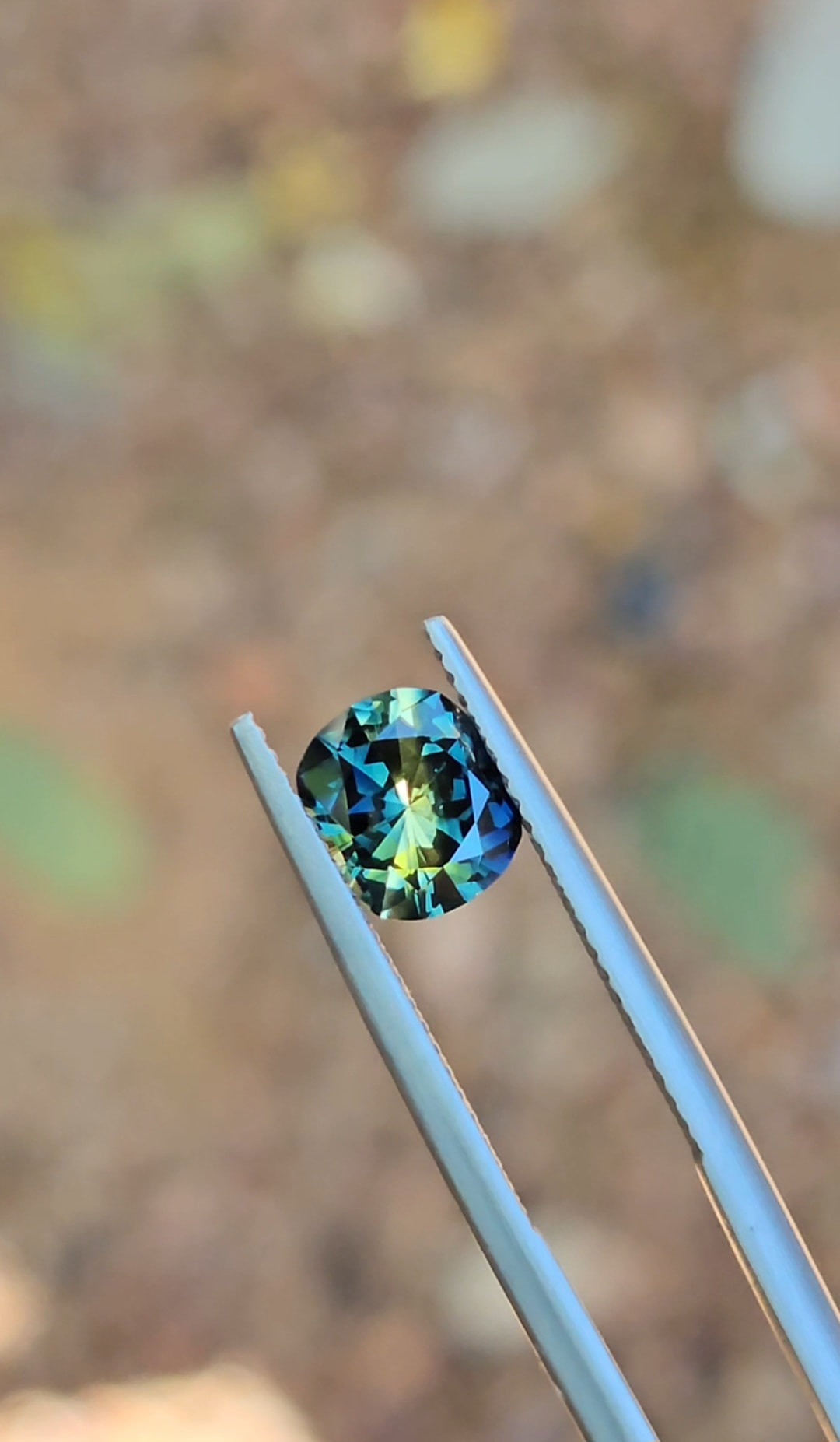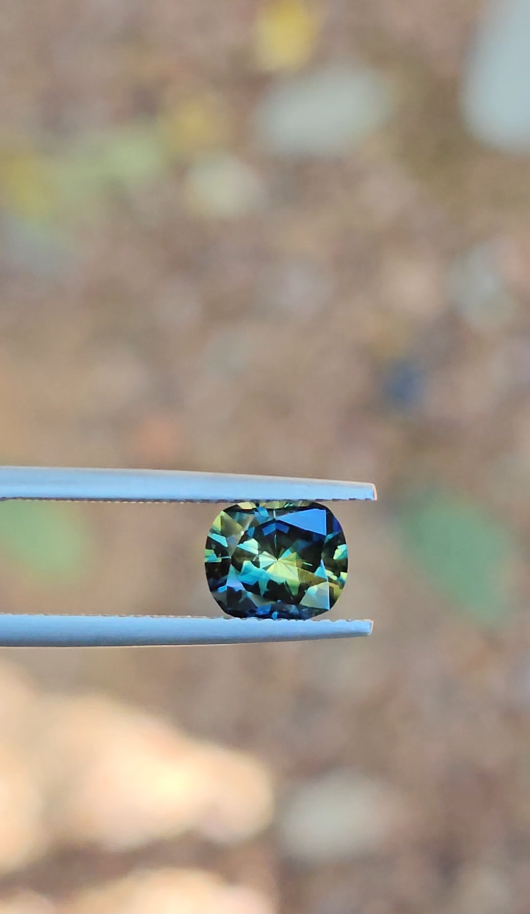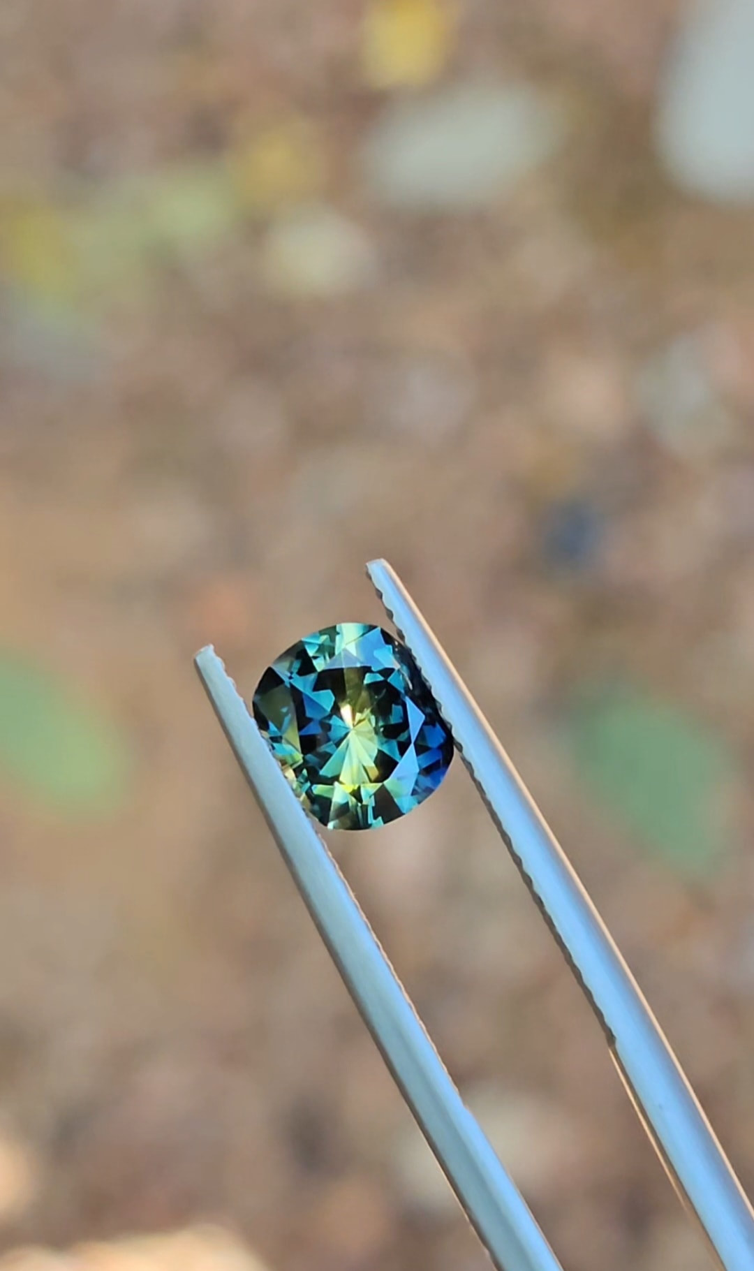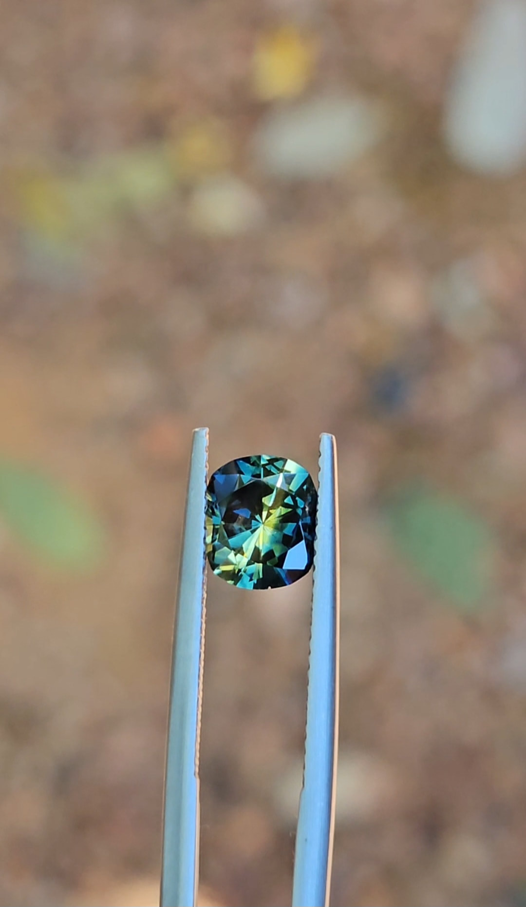 The most unique colour pattern in this sapphire. Making it a special choice for jewellery. Deep but vibrant blue hues with a striking smear of yellow. Intertwined together, creating a beautiful display of natures wonderful creations. Brought to life by Daniel's faceting skills, ready for jewellery now!