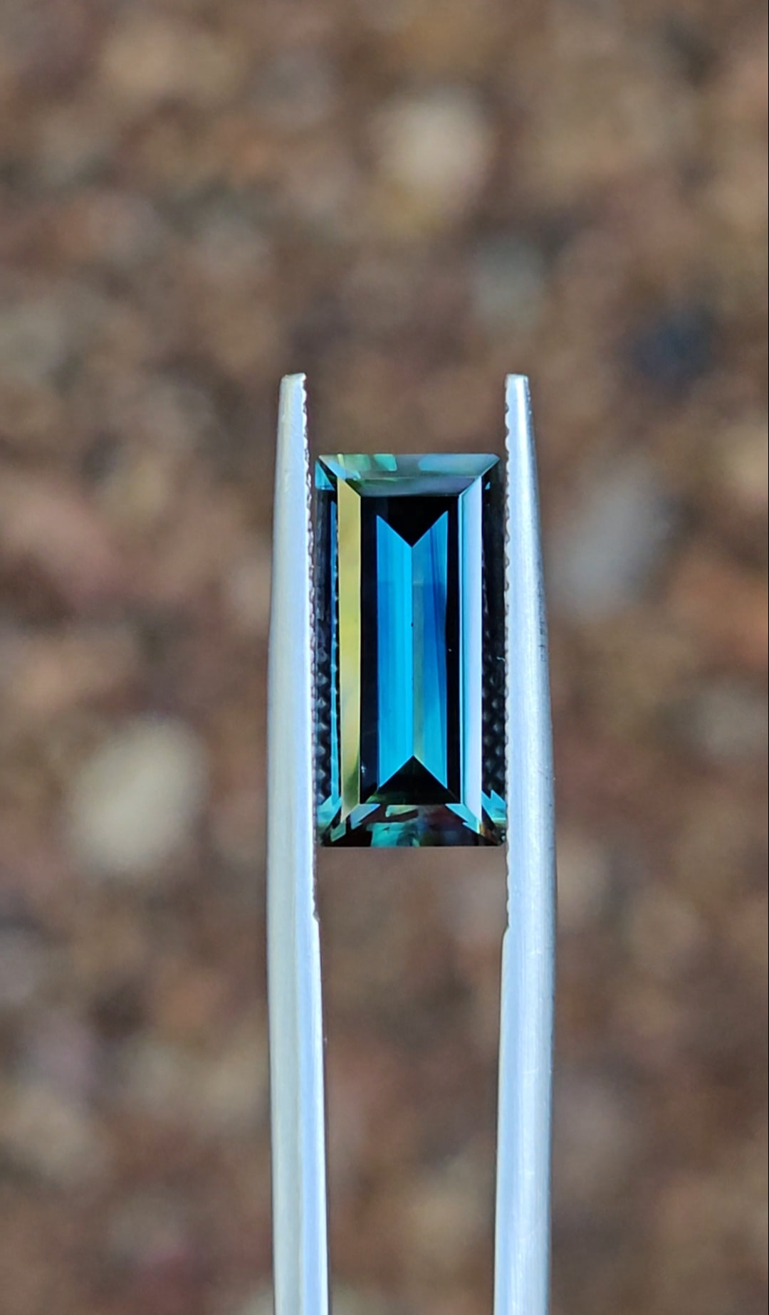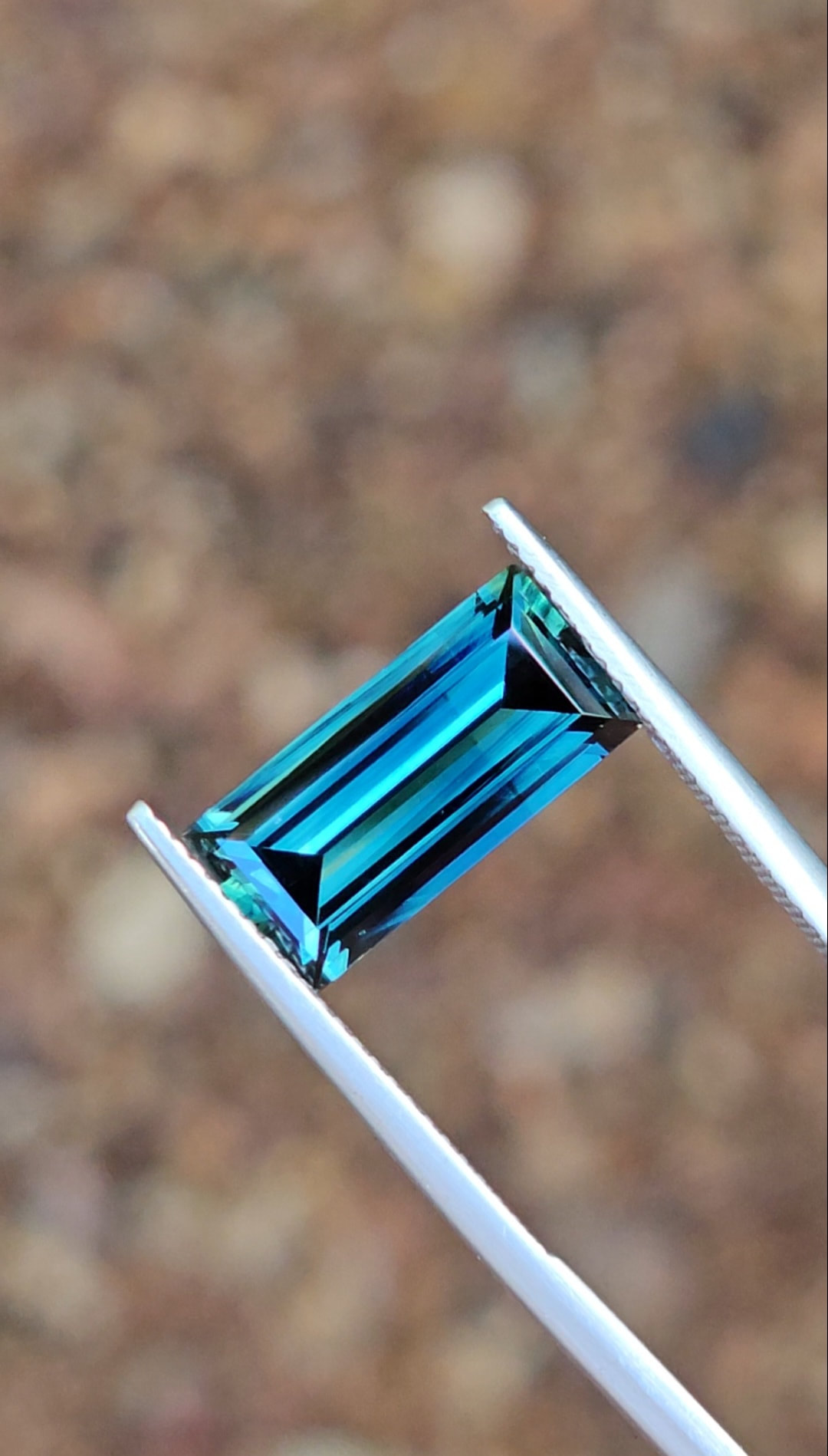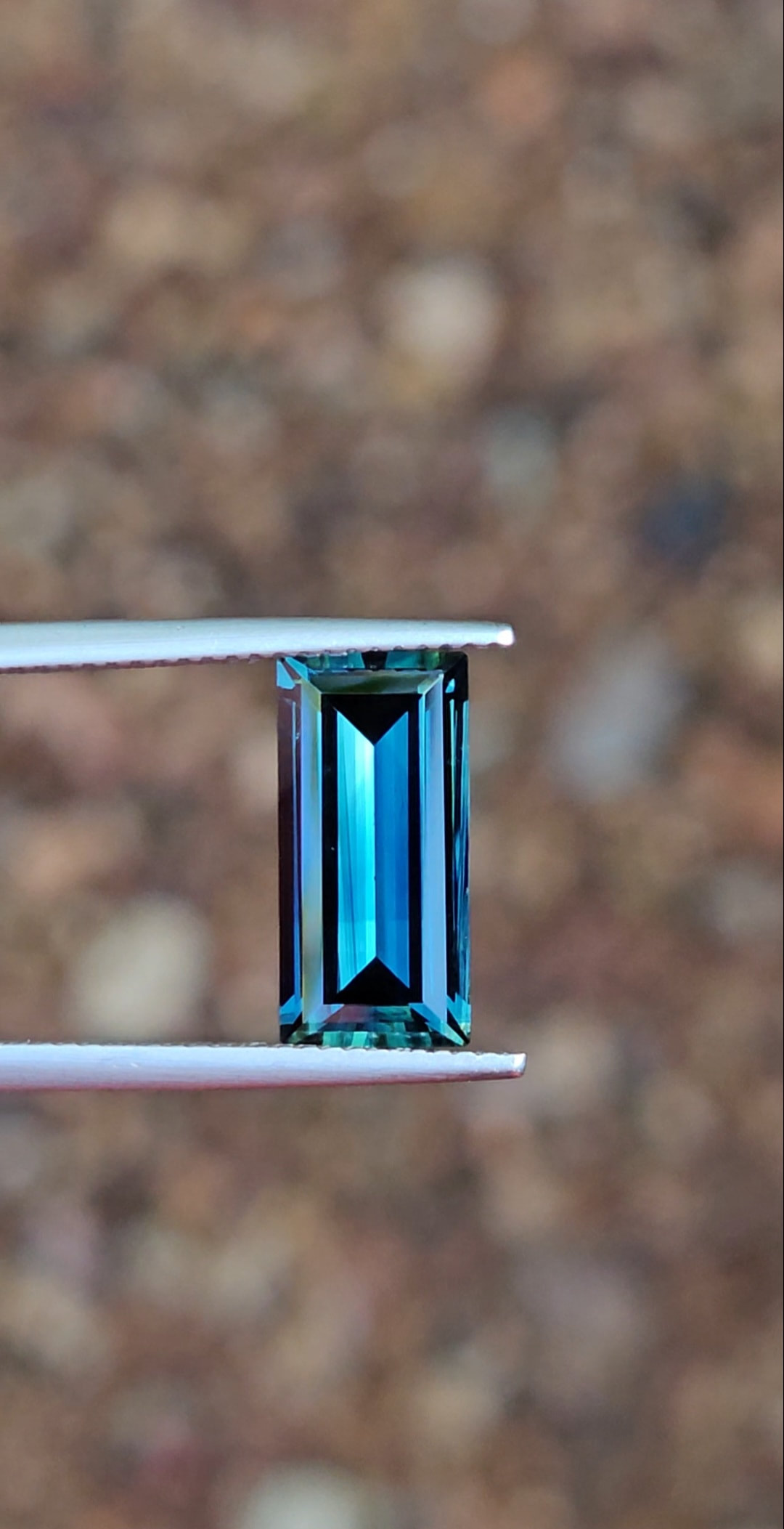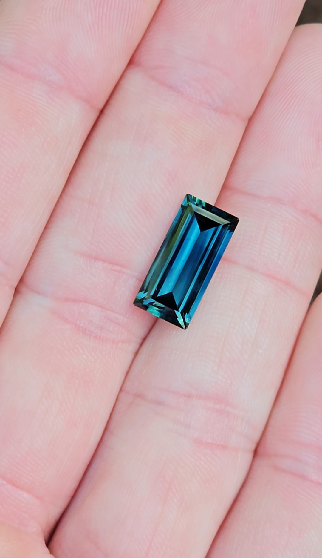 Introducing this top-quality blue parti sapphire. Absolutely mesmerising rich tealy blue colours, stretched out into a baguette cut to amplify the natural colours. This stone would make an exceptional pendant, paired with some diamonds and gold.