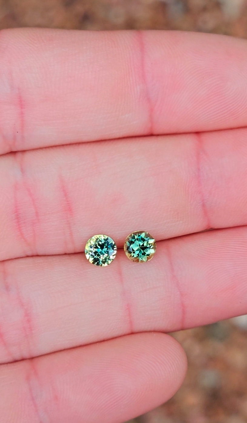 1 x Pair of 5.1mm Teal Parti Sapphires