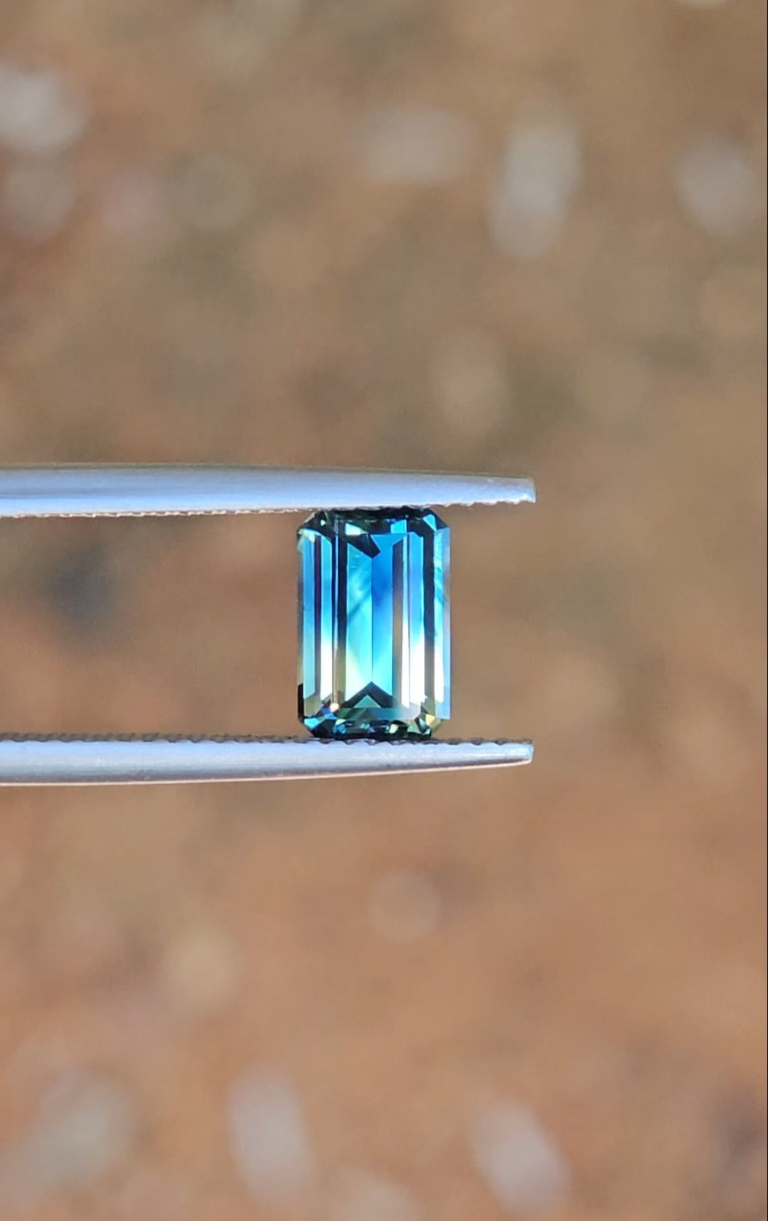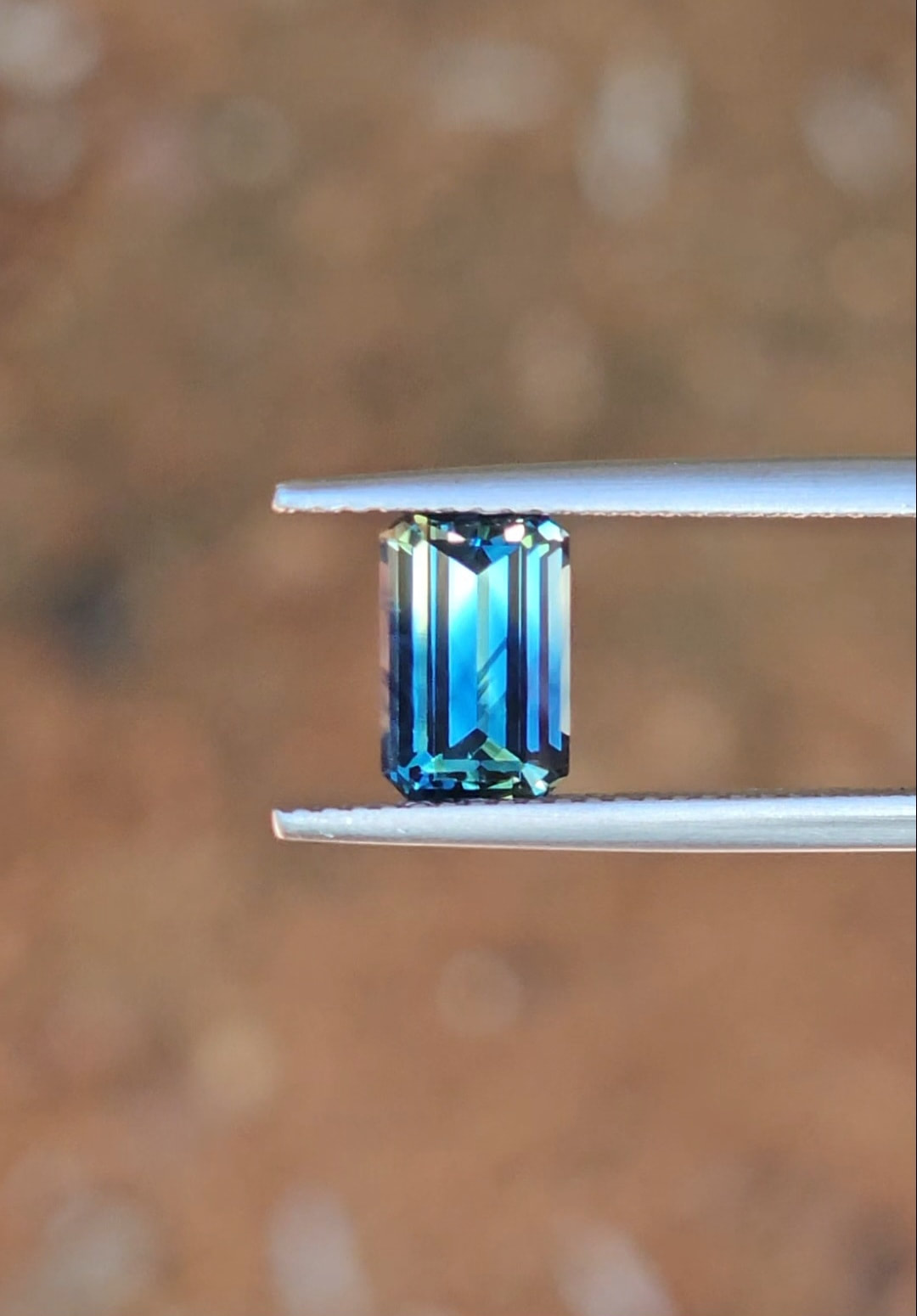 Introducing this magnificent Australian sapphire. Daniel has done a great job faceting this blue yellow parti sapphire. Did you know each sapphire is one of a kind, they have there own colour and characteristics. This one has a divine seperation of colour, from blue to yellow. Make it yours today!
