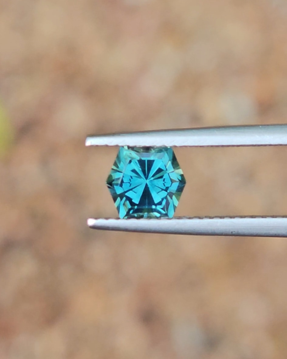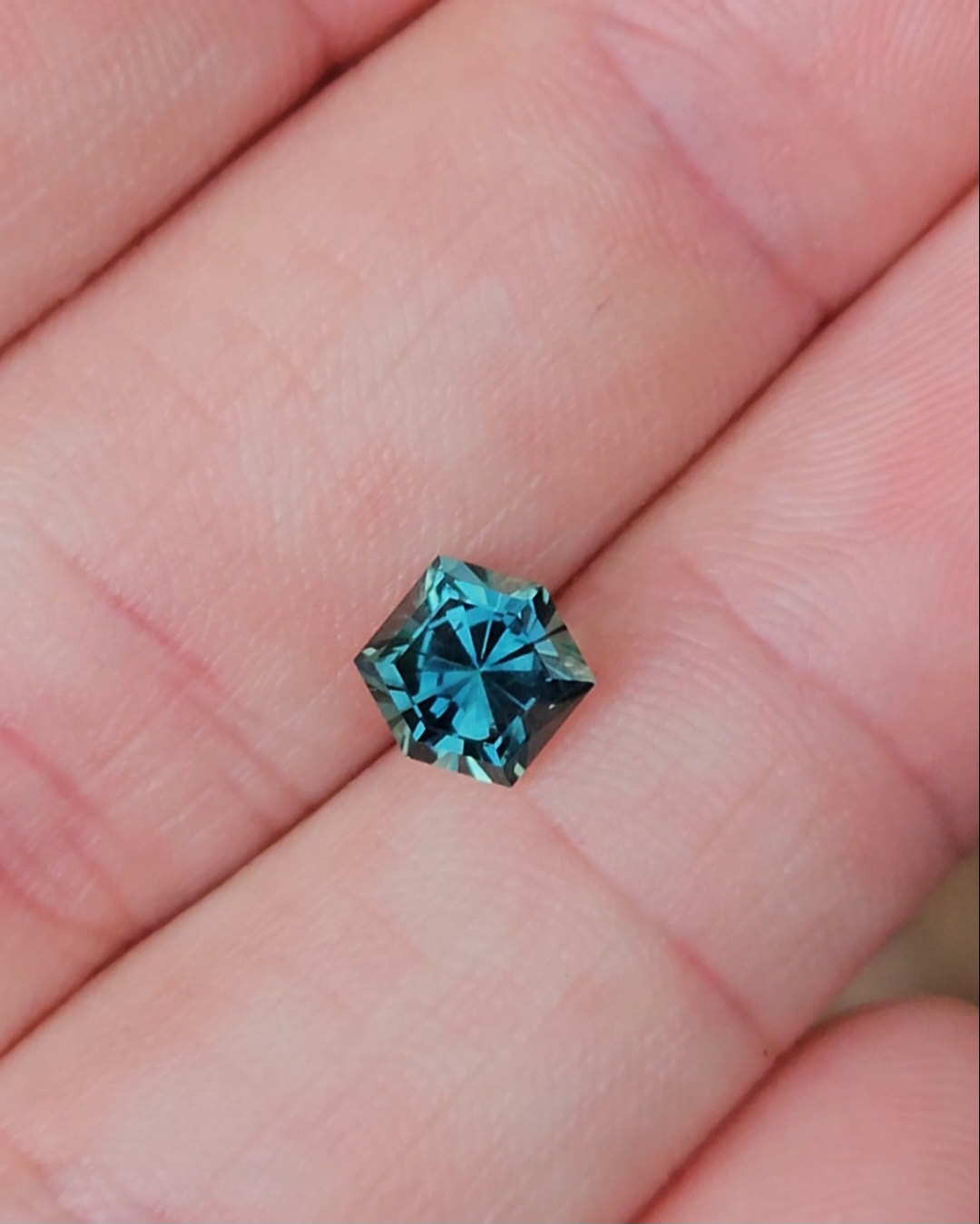 Introducing this gorgeous light blue parti sapphire. Faceted locally into a unique hex cut. The colours are a soft but bright blue parti mix. Ready for jewellery!