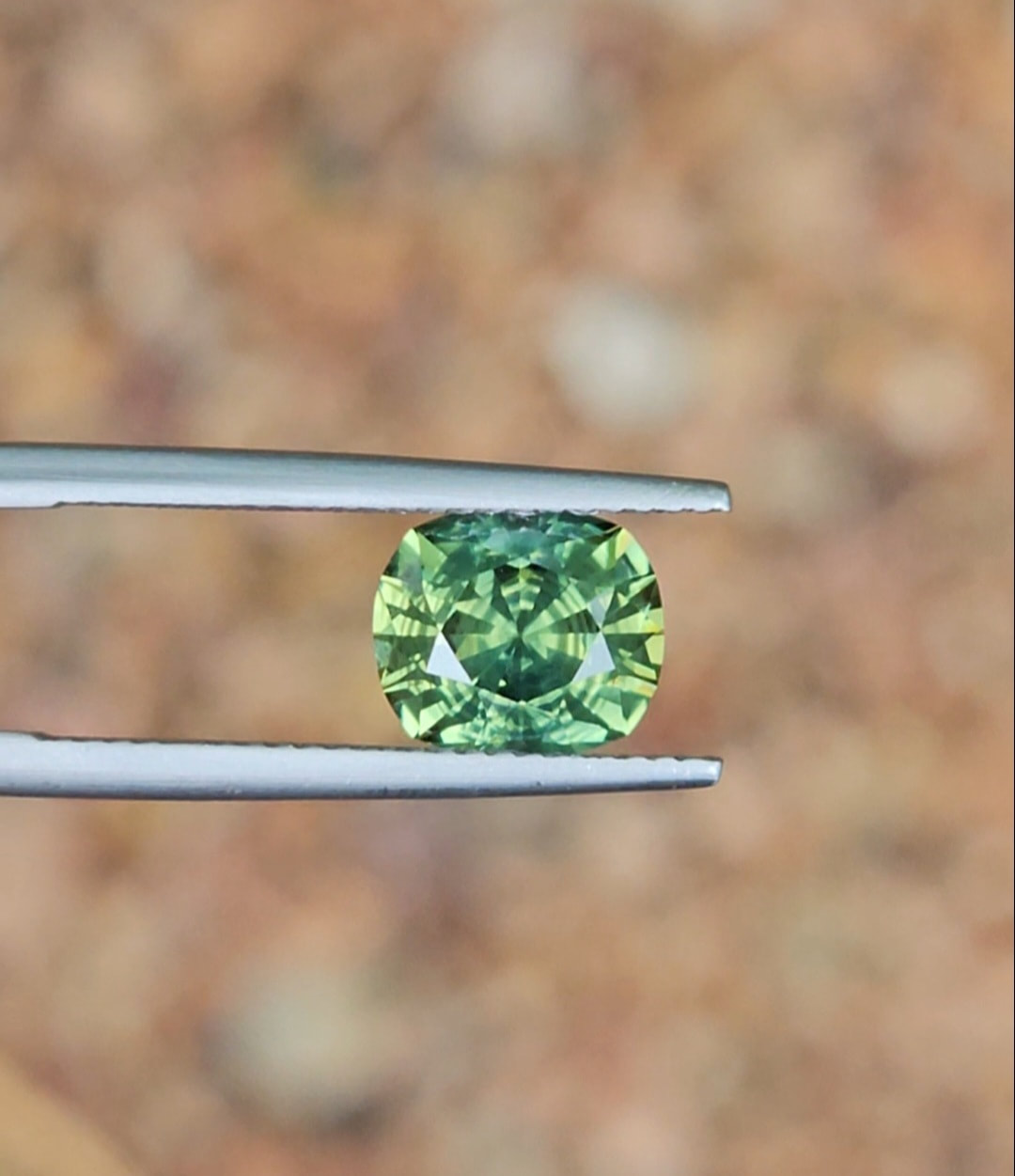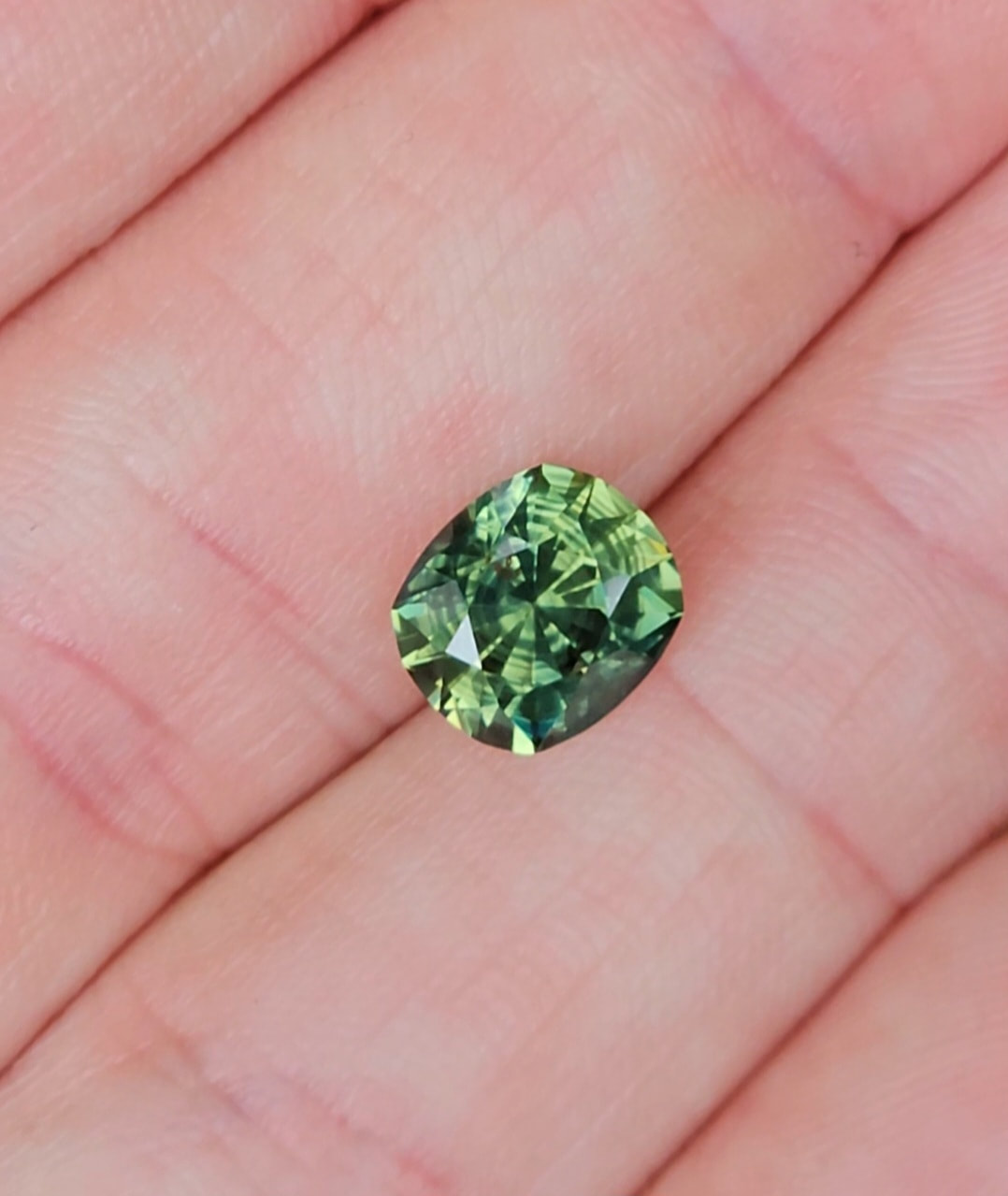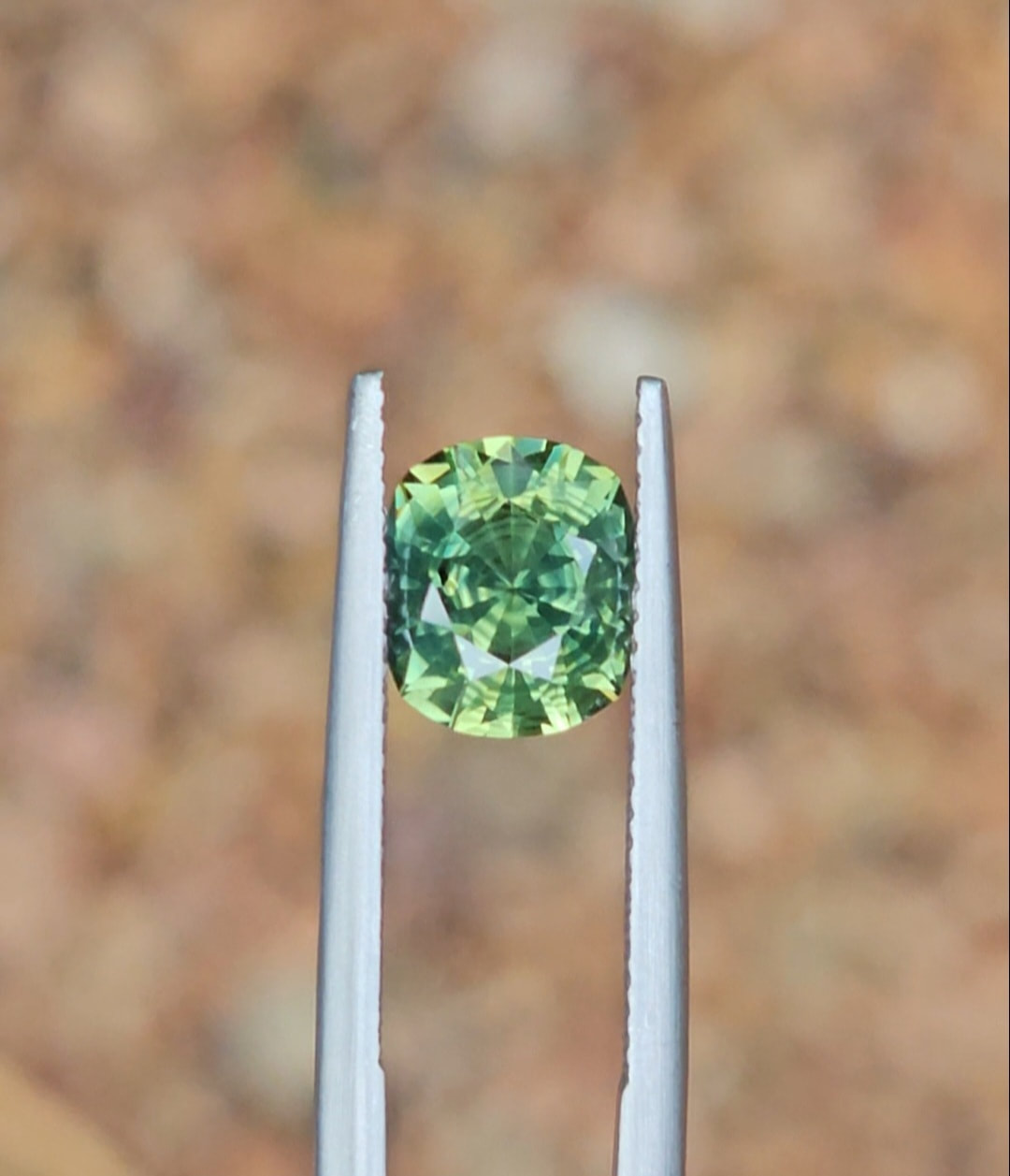 Presenting this bright green-yellow parti sapphire to you. The colours are a light and bright mix of green and yellow. As always it is faceted to an exceptional standard, by Daniel. What makes this stone unique is the colour pattern. This is a colour illusion from only 2 small colour patches and it is re appearing through the sapphire from multiple angles and facets. Often sapphires will come with these unique characteristics, making each sapphire different to the other.