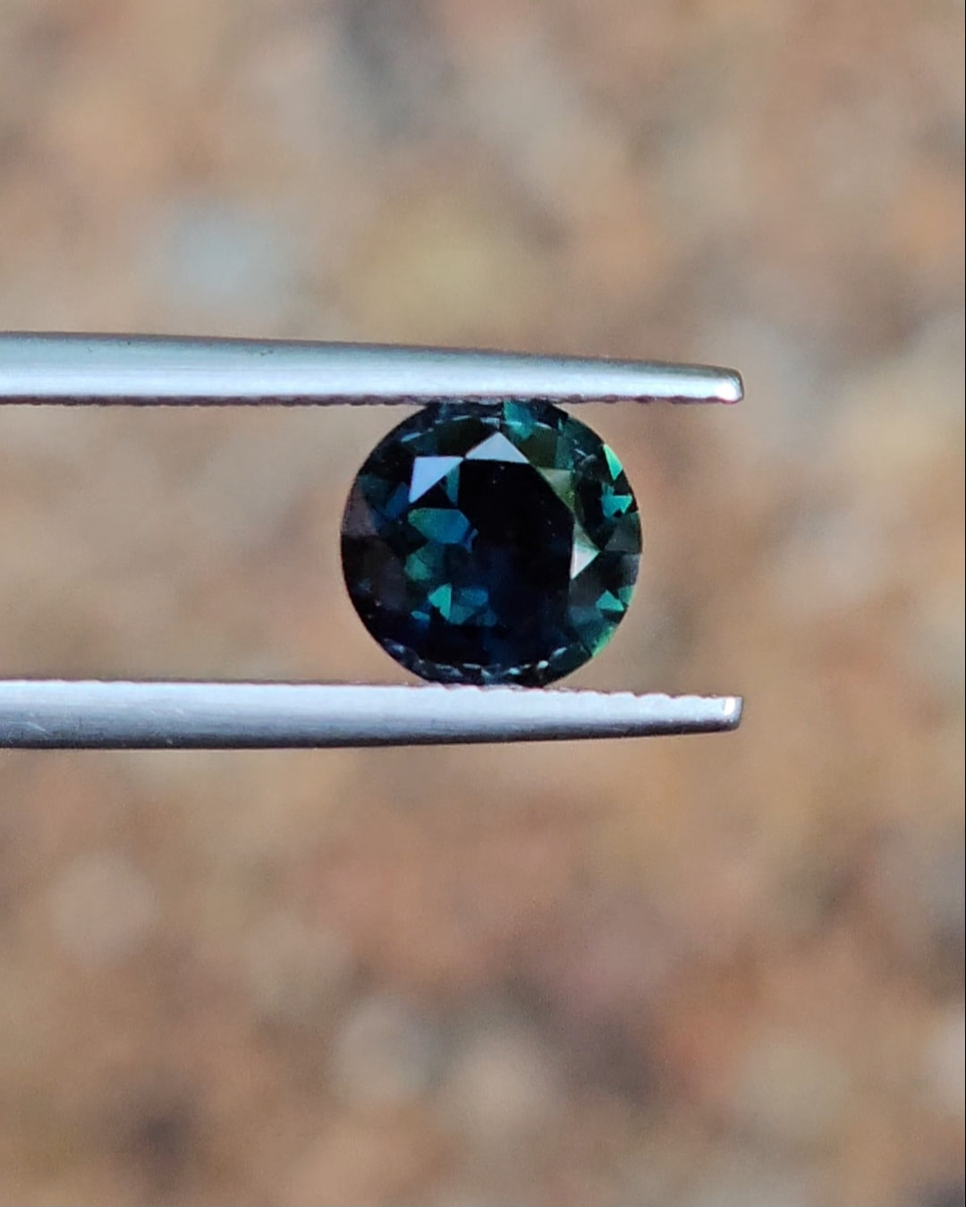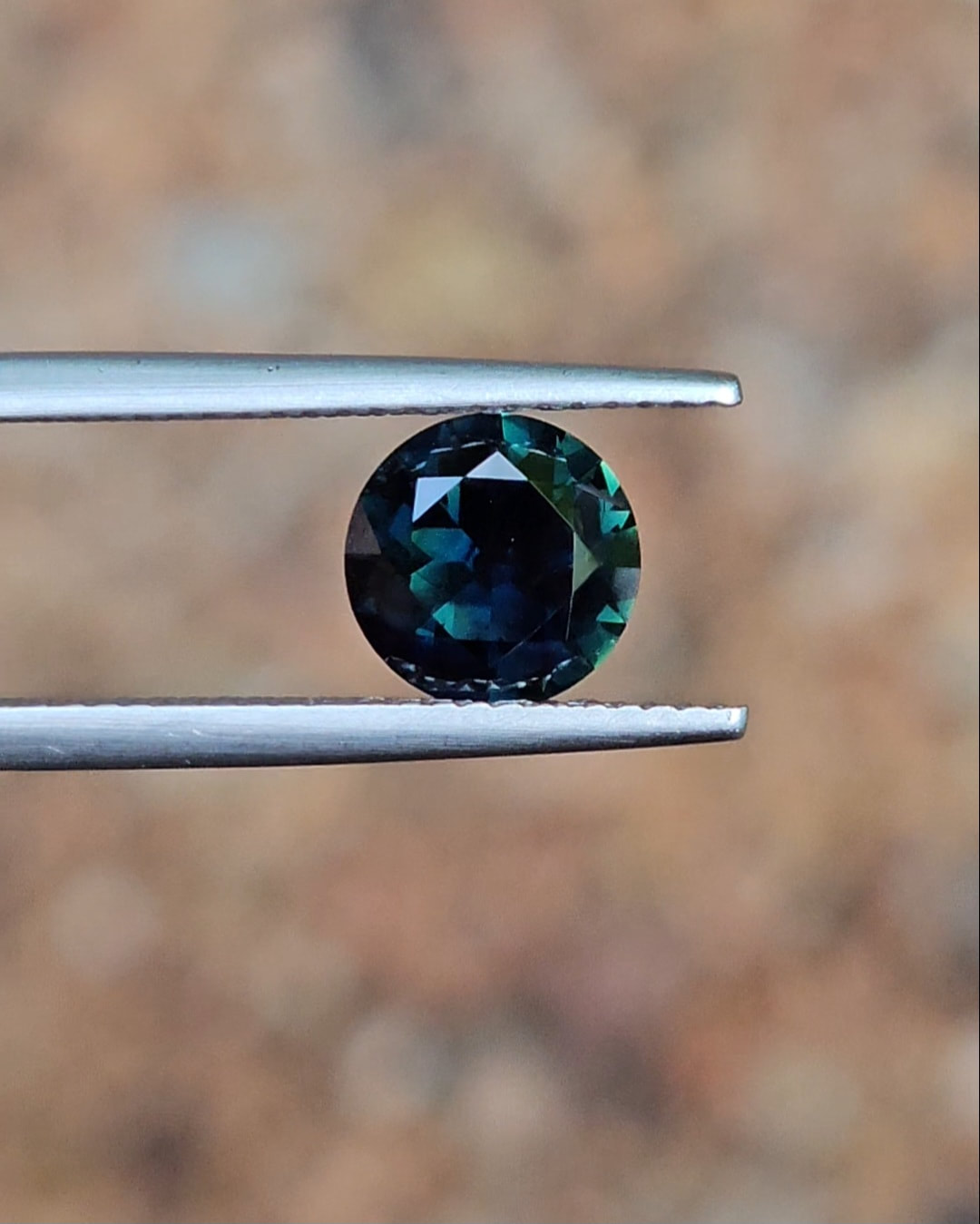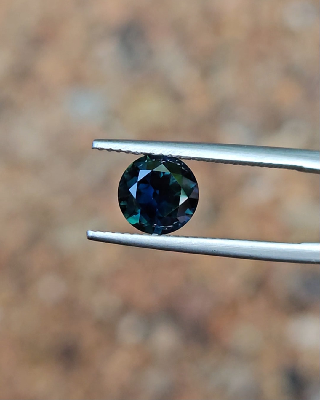 This sapphire carries a deep, shadowed blue‑green tone with a yellow undertone, the kind of colour that sits right on the edge of midnight. Under brighter light it reveals subtle teal flashes, but its true character is that moody, powerful depth that feels grounded, sophisticated, and unmistakably bold.