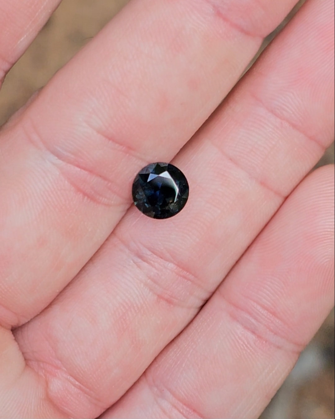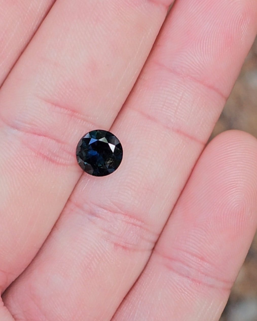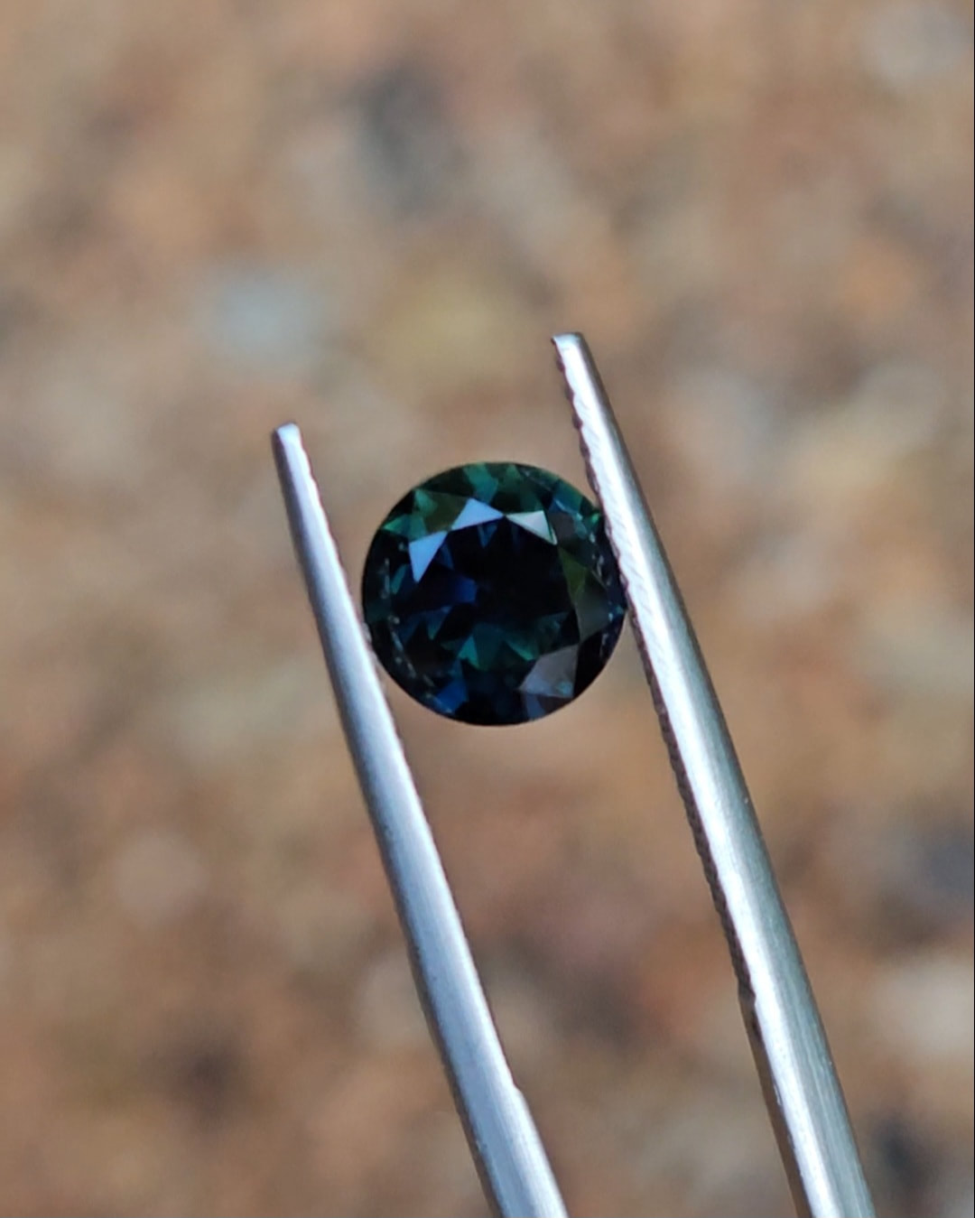This sapphire carries a deep, shadowed blue‑green tone with a yellow undertone, the kind of colour that sits right on the edge of midnight. Under brighter light it reveals subtle teal flashes, but its true character is that moody, powerful depth that feels grounded, sophisticated, and unmistakably bold.