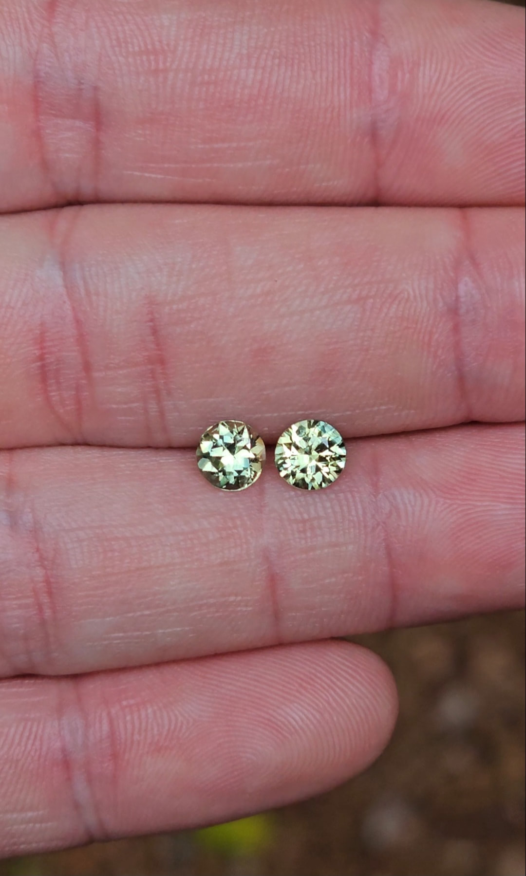 1 x Pair of 5.1mm Yellow Parti Sapphires