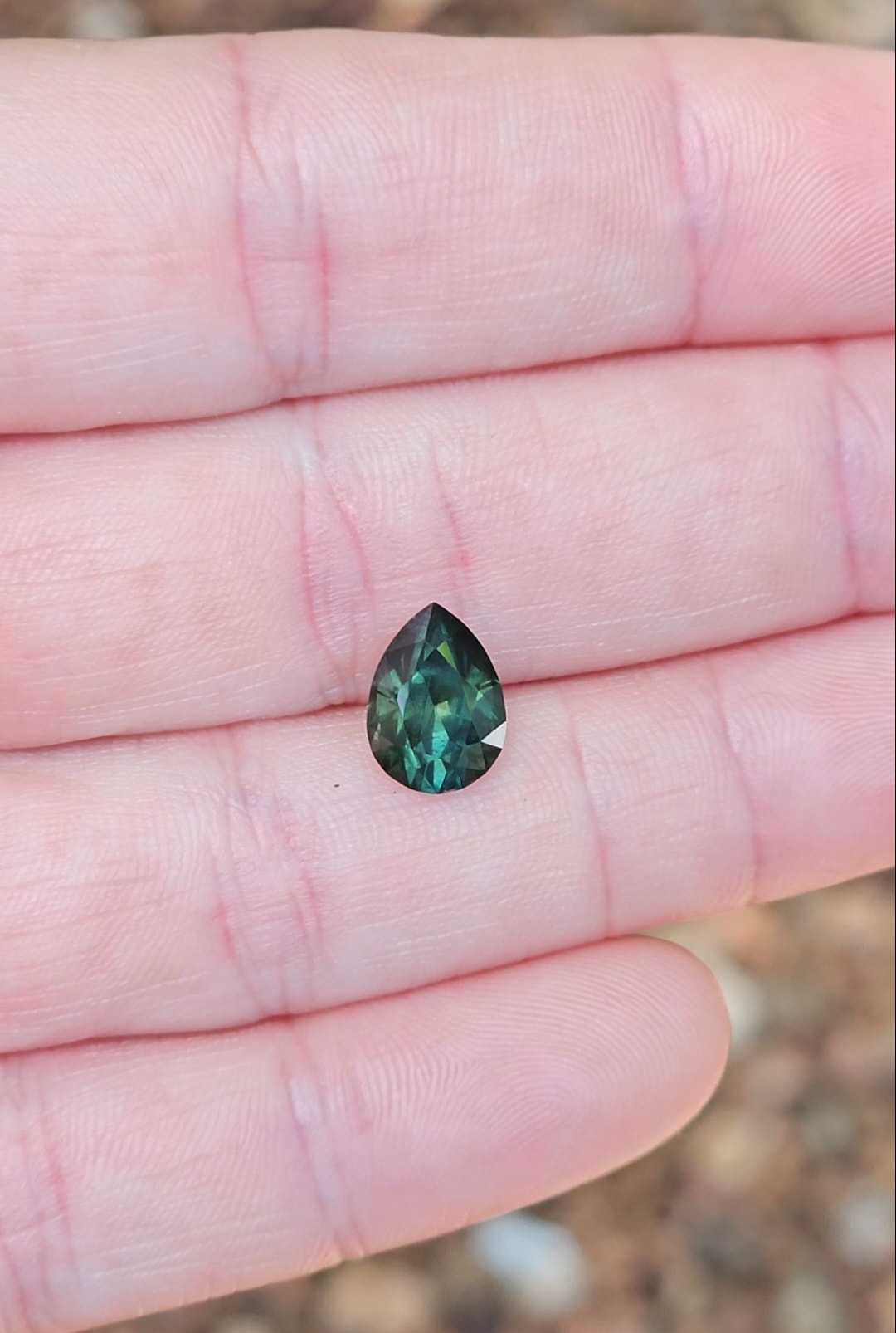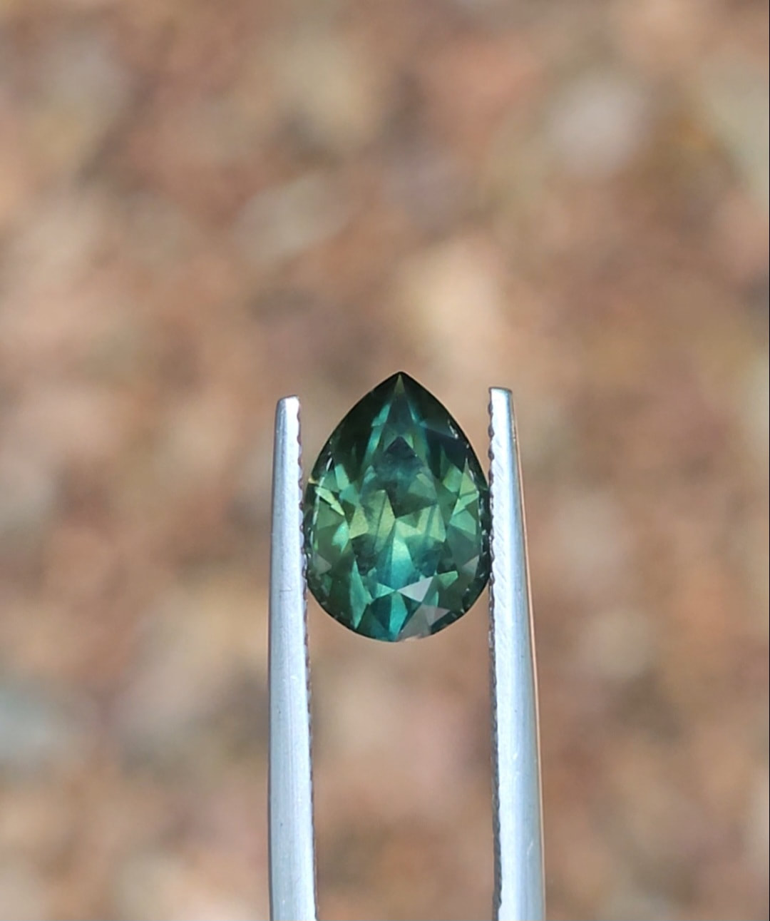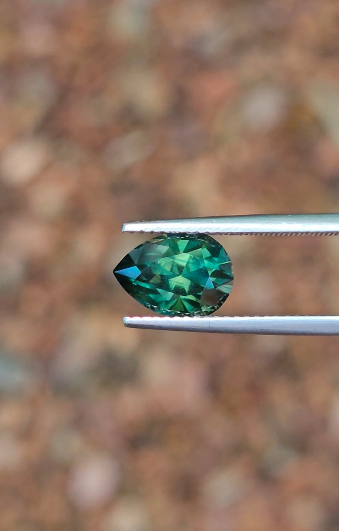 Introducing the deep and alluring beauty of this large green pear cut sapphire. The colours are a deep seafoam green with flickers of yellow. It is an impressive sapphire overall and will be sure to draw attention from across the room.