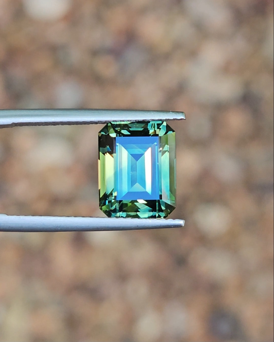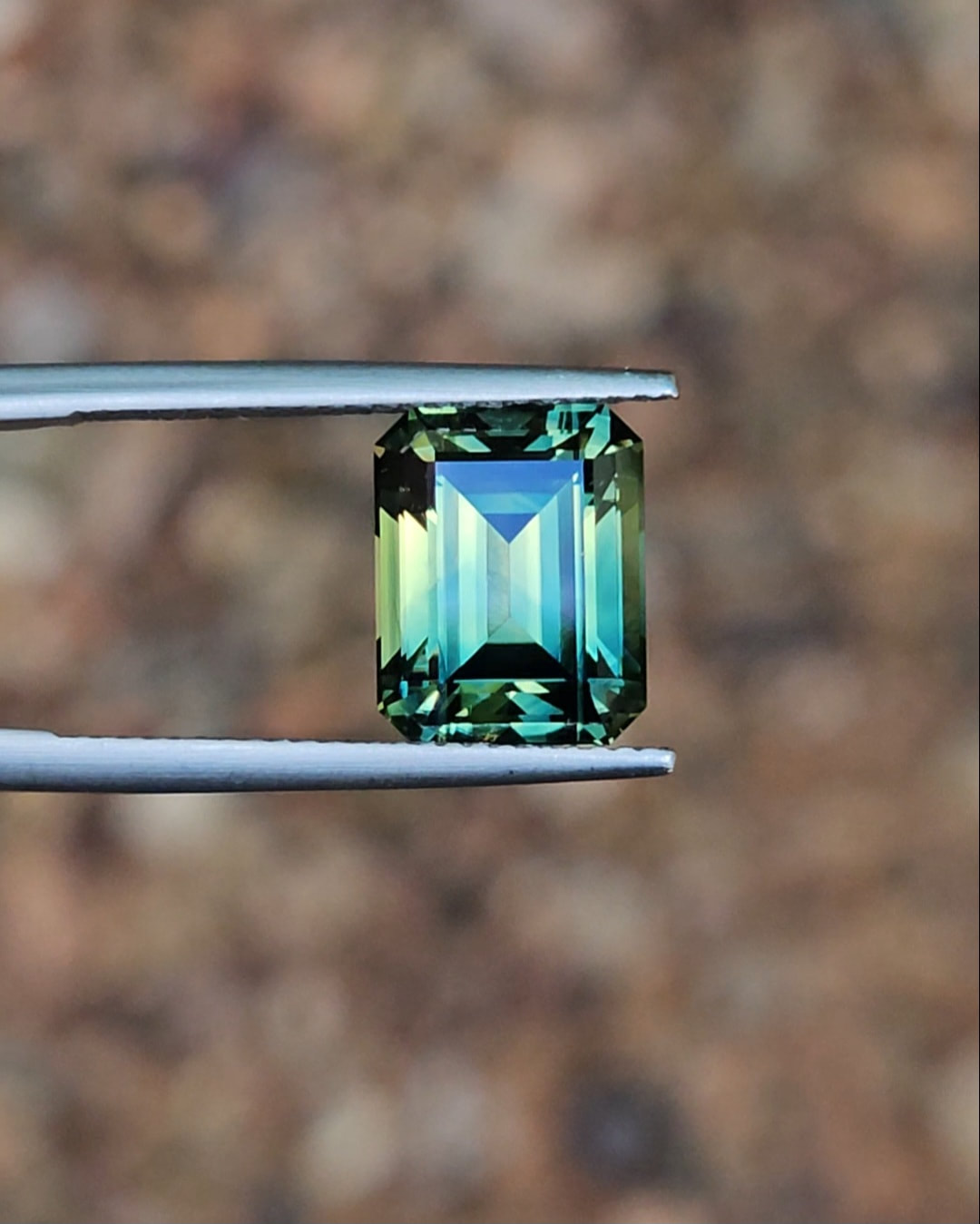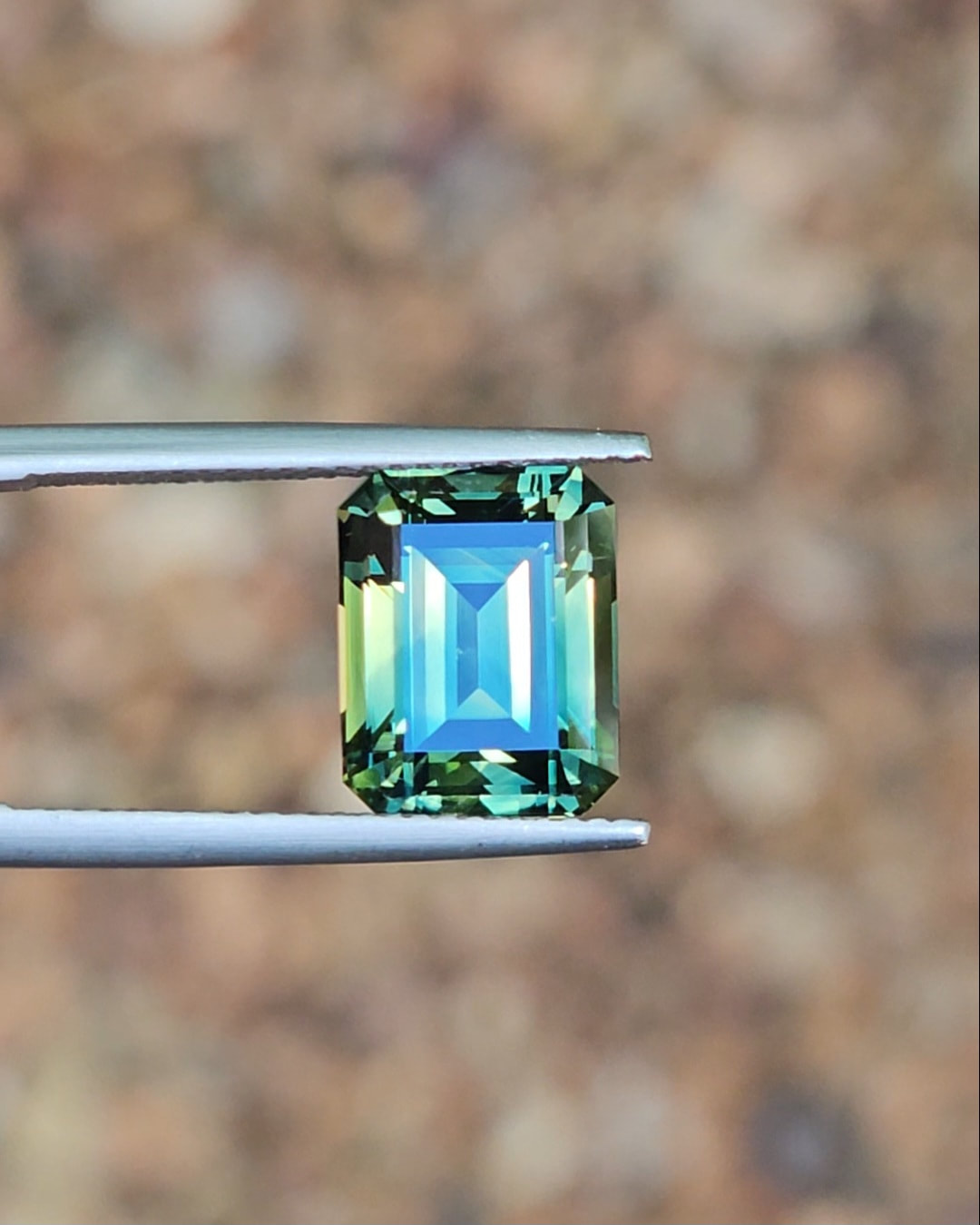 This remarkable gemstone is a perfect example of just how extraordinary Australian sapphires can be. Emerald cuts are renowned for revealing the natural movement of parti colours, and this stone showcases that beautifully.